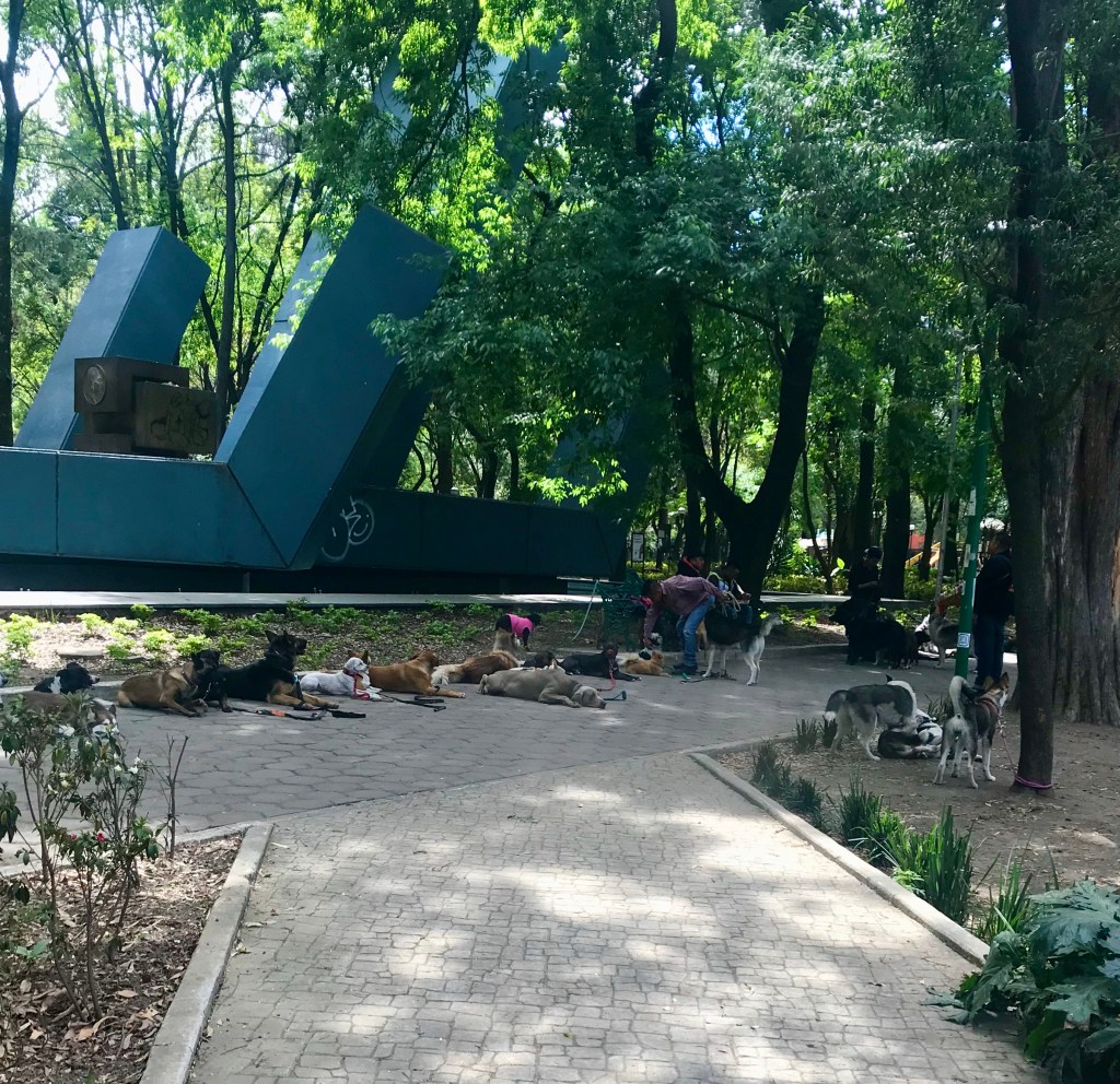 From there we walked and explored Condesa and Roma neighborhoods. What a cute area! There are tons of beautiful buildings and shops. On Amsterdam Avenue, there is a pedestrian walkway in the middle of the road but lined with tall trees and bushes. There are several parks in the area as well where dog walkers arrive with a dozen (surprisingly) well-behaved dogs and they often roam without leashes.