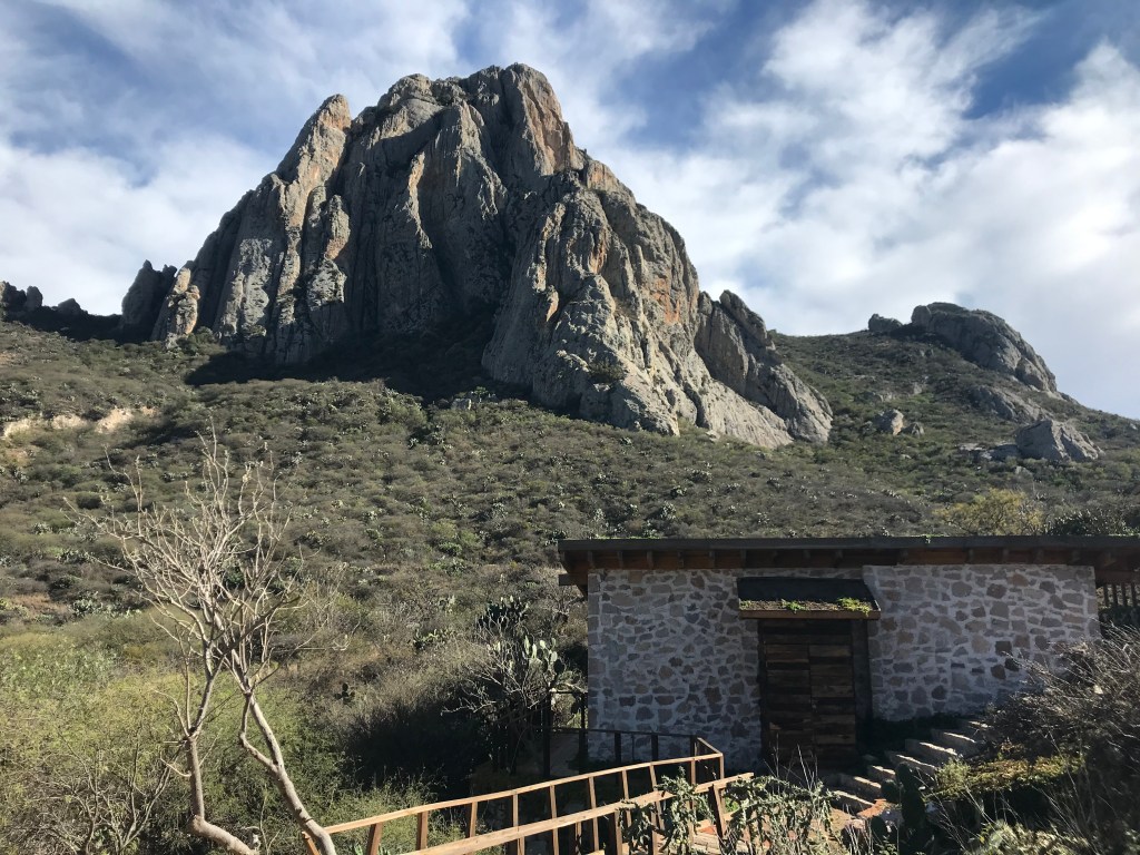 Peña de Bernal is a giant monolith of the edge of town. At 1,431ft tall it is one of the largest monoliths in the world. A popular tourist attraction, there is a via ferrata (a protected climbing route) which visitors come to climb. There is a small shrine and crosses at the top of the monolith and it is a type of pilgrimage besides being just a little outdoors fun. It is also wine and cheese country so the town is a very cute, colorful, and welcoming.